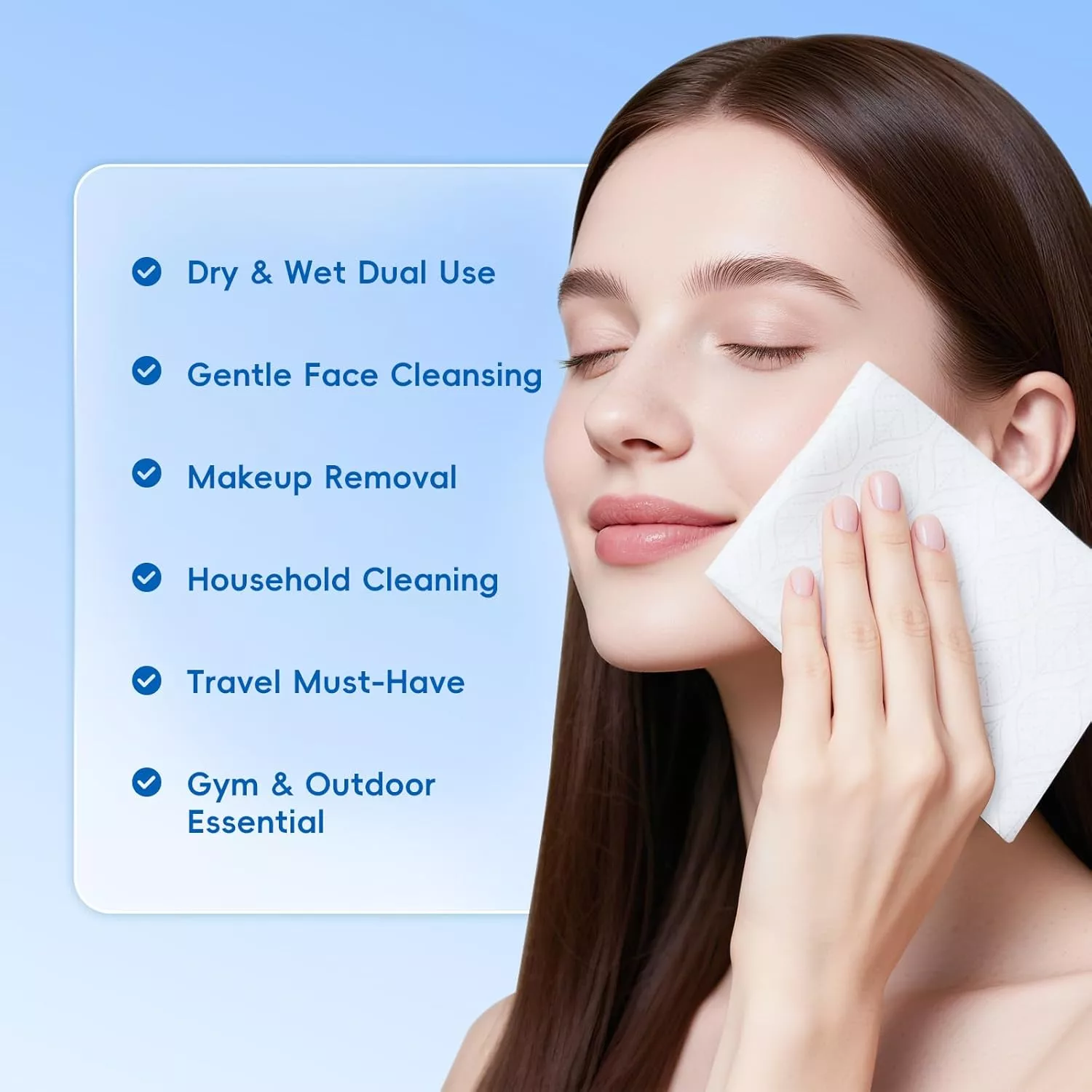 ميزة uoovsaap مناشف الوجه يمكن التخلص منها مناشف المناشف الورقية الأنسجة الورقية النظافة 100 ٪ طازجة كل ما تستخدم البكتيريا تراكم الدموع بسهولة النعومة الفائقة ، ناعمة الصديقة للبشرة ولكن الخشنة على timeerough على skin-frienderination biodedible wash مع المنظفات لا تنفصل عن المناصب الخشبية